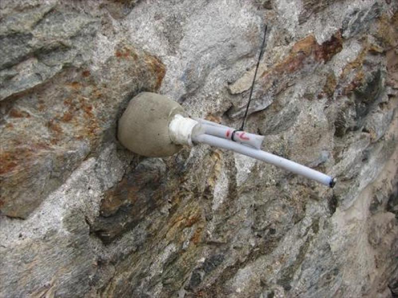 - ancoraggi orizzontali ciechi iniettati con calza per il consolidamento strutturale della torre campanaria - lunghezza totale 1,65m - inseriti nello spessore della muratura perimetrale del campanile, con iniezioni effettuate dalla sola testa dell’ancoraggio;