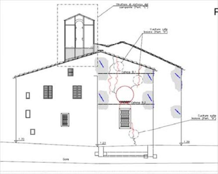 - inserimento di due tiranti verticali nel campanile a vela.