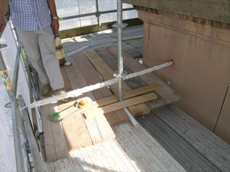 Inoltre, la tecnologia Bossong è stata anche impiegata per la messa in sicurezza degli elementi in pietra artificiale armati di grosse, medie e piccole dimensioni delle facciate monumentali per mezzo di ancoraggi con barre in acciaio inox iniettate con resina epossidica bicomponente.