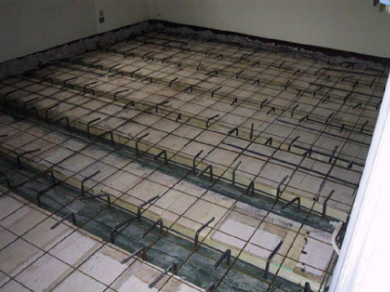 Consolidamento di solaio in legno esistente con formazione di sovrastante lastra in calcestruzzo armato. La necessità di rendere collaborante la soletta con i travetti che costituiscono l'orditura lignea del solaio richiede l'inserimento di dispositivi di connessione metallici che hanno la funzione di trasferire la forza di scorrimento e ostacolare lo slittamento tra le parti.