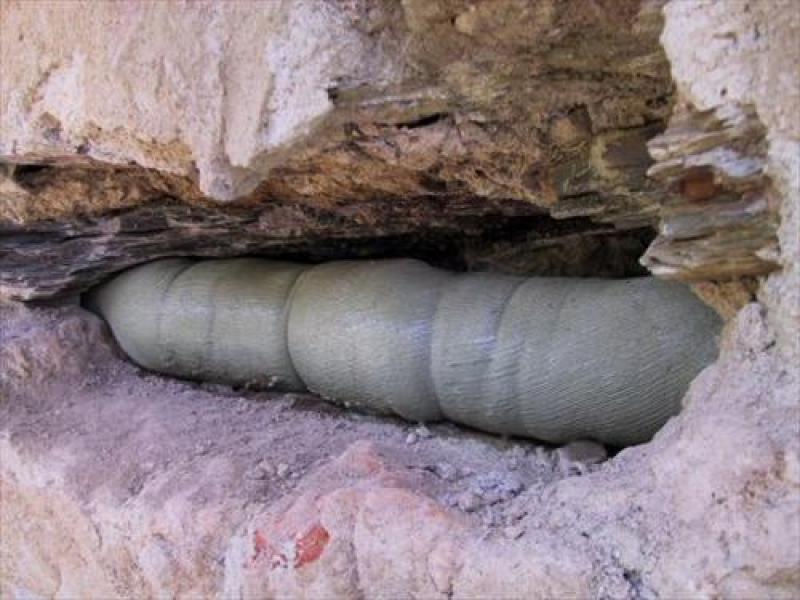 ANCORAGGI > mod. GBOS 20-60 P costituiti da barra tipo GBOS 20/304 in acciaio inossidabile AISI 304  con filettatura continua su tutta la lunghezza, complete di calza per il controllo dell’iniezione della malta, appositi tubicini di iniezione, connessioni (manicotti di giunzione) in acciaio inossidabile AISI 316 (A4) e malta Presstec specifica per iniezioni con calza