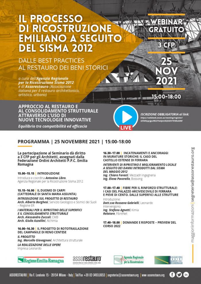Il processo di ricostruzione emiliano a seguito del sisma 2012 - WEBINAR 25 NOV 2021