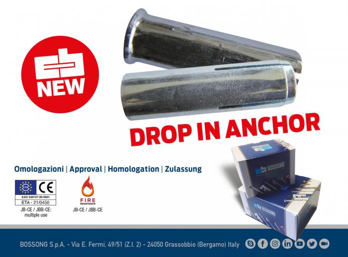 Ancorante passante Bossong in acciaio per carichi medio-pesanti. Fissaggio universale per calcestruzzo.